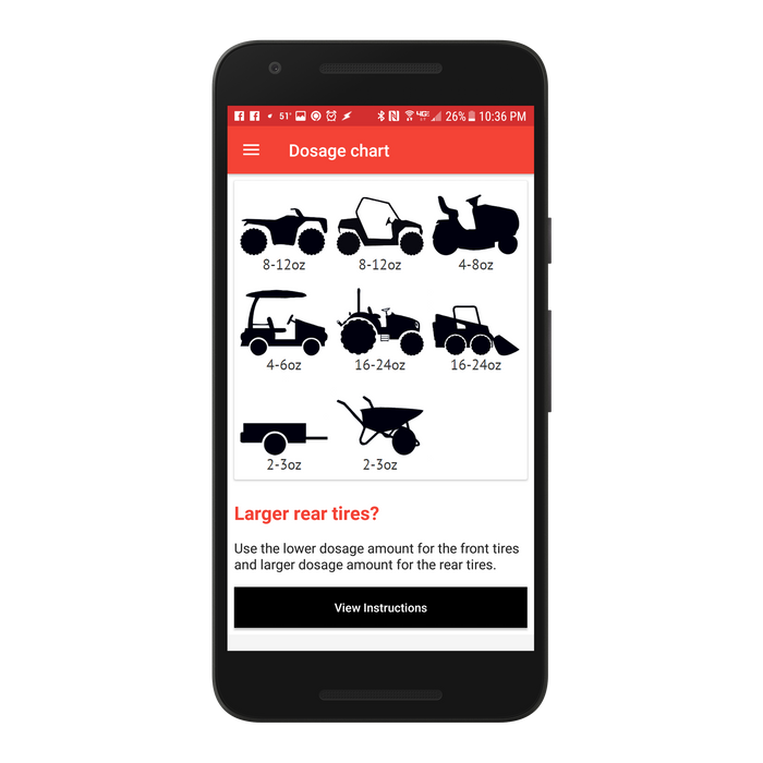 View the dosage chart and use the dosage calculator for installing TireJect tire sealant. Track dosage on your equipment and receive notifications when its time to re-dose your tires. Never forget when and what tires have TireJect tire sealant installed. Our intelligent mobile app keeps track and sends you a notification when your tires need fresh tire sealant.